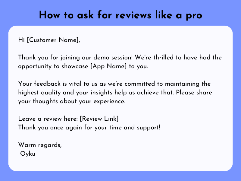 - Ask After Positive Interactions: Timing is everything. Ask for reviews after a demo session, or solving a support ticket when the user is most satisfied. They don't have to be subscribers, but users with a good-enough experience.