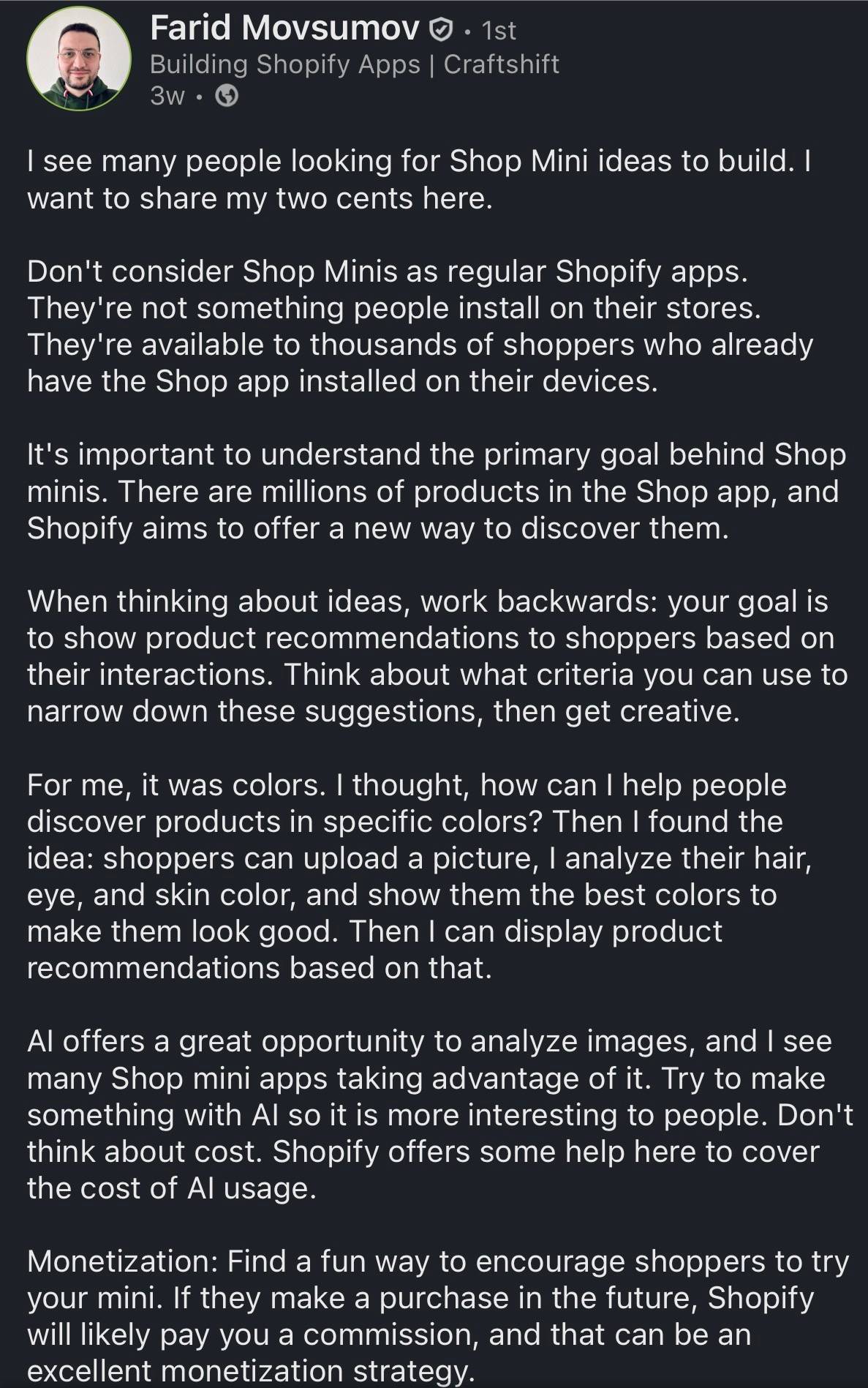 Shop Minis have been getting a lot of attention lately, and for good reason. But if you’re considering building one, there’s a crucial mindset shift to make: You’re no longer building for Shopify merchants. You’re building for their customers.